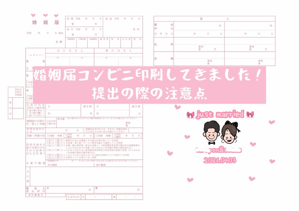 【実体験】コンビニ印刷のオリジナル婚姻届を提出してきました|婚姻届の注意点