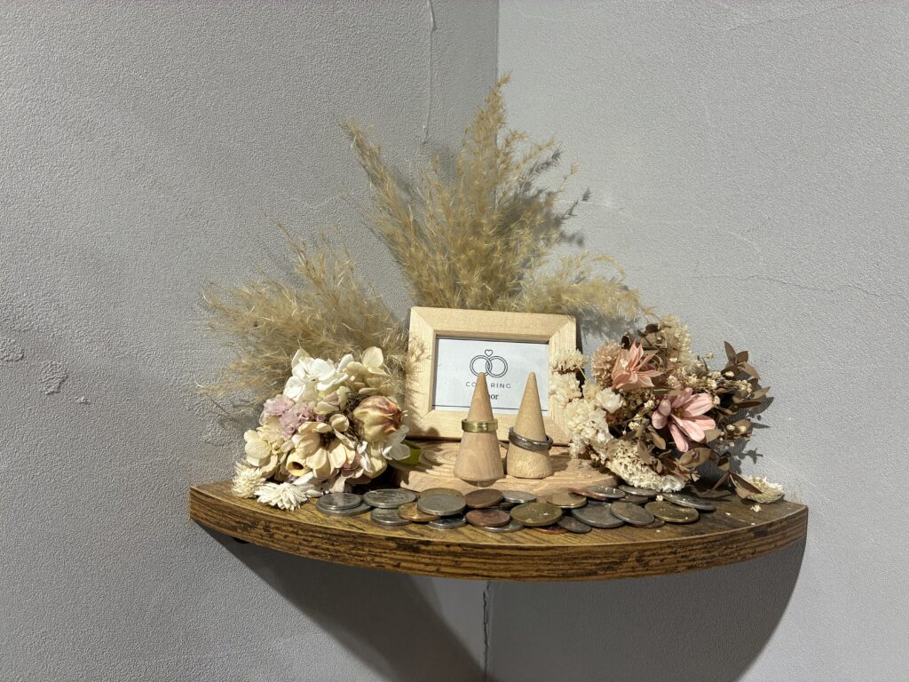 そんなワタシたちも、結婚式では指輪交換の出演がしたいと思って愛知県犬山市の『COIN RING Amor』でコインリングを作ることにしました。(予約は🔗の公式ラインからしてくださいね‼️)縁結びや食べ歩きで有名な犬山城下町!!古民家な雰囲気がとってもおしゃれな雰囲気の店内で、店員さんとの会話も楽しかった〜♡