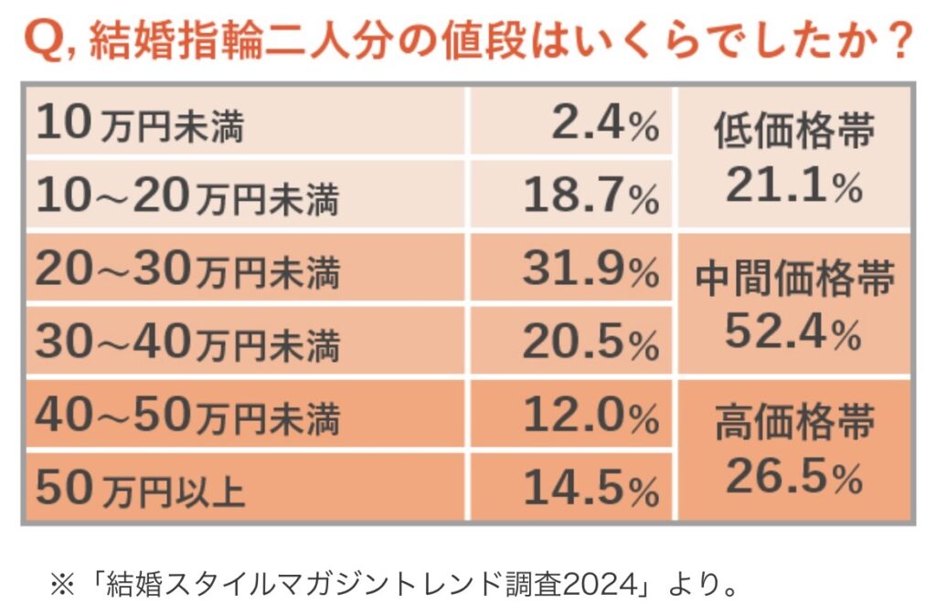 結婚指輪の相場は夫婦2本分でおよそ30万円!!支払いは夫が全額〜ほとんど支払ったという人が69.4%と多め