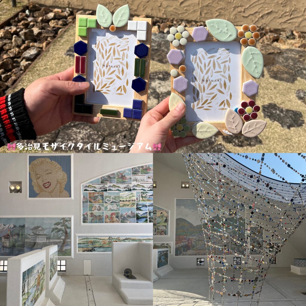 日本一のタイル生産地として知られる笠原町にあるタイルの博物館です。独特な世界観で不思議な魅力があふれて、ワクワクと可愛いが溢れる博物館でした。フォトフレーム体験に挑戦して素敵な思い出作りをしましょう♡ワタシたちはお互いに作り合いしました!!ぽんさんのフォトフレームのテーマは『昔のケータイ』らしいです…(笑)